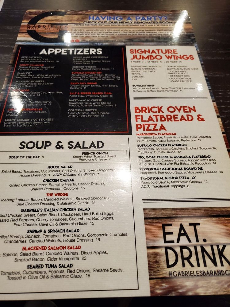 Gabriele's Bar & Grill is a vibrant sports bar and grill located in Piscataway, NJ. With a diverse menu featuring tantalizing appetizers like Buffalo Cauliflower and House Made Cheesesteak Eggrolls, as well as signature wings and mouth-watering tacos, Gabriele's offers a culinary experience that delights the taste buds. The establishment boasts ample parking, a spacious bar area, and attentive service. Customers rave about the attentive and friendly staff, prompt service, and delicious food served hot. Special nights like karaoke and live bands add to the lively atmosphere. While some reviewers mention slightly higher drink prices, the overall consensus is that Gabriele's is a hidden gem worth revisiting. Whether you're looking for a casual night out or planning a special group event, Gabriele's Bar & Grill promises a memorable experience for all.